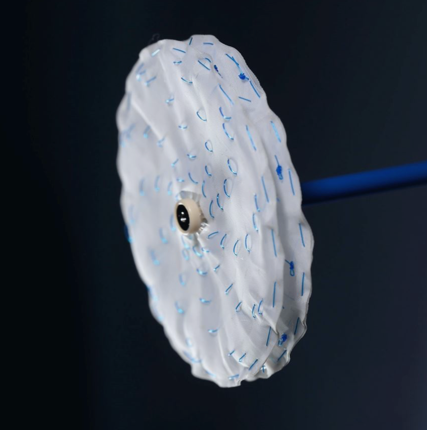 The implant from the Swiss company #CARAG AG is a kind of «umbrella» that closes congenital defects in the atrial septum of the heart. The framework consists of lactic acid, plus two thin plastic discs made of polyester. Within a few weeks it is covered with the body’s own tissue. After a maximum of two years, the framework has completely dissolved.